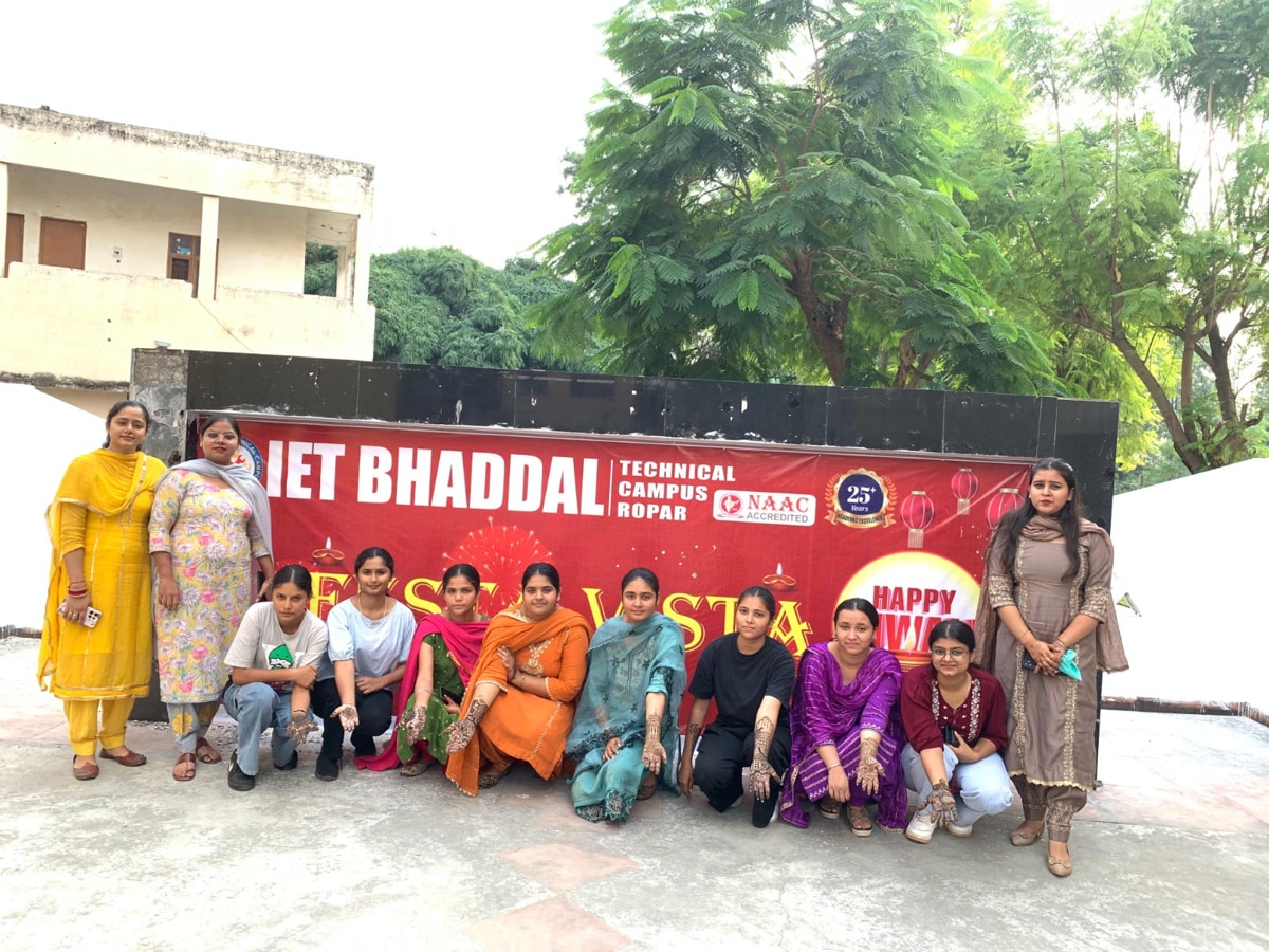 The festival of Diwali was celebrated with great enthusiasm, joy and excitement at IET Bhaddal Technical Campus. The entire campus was beautifully decorated with strings of lights, colorful diyas and flowers, creating a vibrant and festive atmosphere all around. In his message, the Campus Chairman, S. Tejinder Singh, extended Diwali greetings to all students and staff members, saying that Diwali symbolizes the triumph of light, truth and goodness. He emphasized that this festival should be celebrated with joy, love and togetherness—but without the use of firecrackers—to prevent environmental pollution and protect nature. He appealed to everyone with the message: “Let every home celebrate Diwali, but not at the cost of nature.” To mark the occasion, various competitions were organized to highlight the creativity and talent of students. Events such as Rangoli, Mehndi and Diya Decoration were the main attractions of the celebration. Students participated with great zeal and showcased their artistic skills. In the Rangoli competition, the team of Bhuvesh, Arshvir Kaur and Komalpreet Kaur secured the first position. In the Mehndi competition, Rajveer Kaur bagged the first prize, while in the Diya Decoration contest, the team of Kaushik, Chashima, and Anjali from the Pharmacy Department won first place for their creativity and innovative designs. Addressing the gathering, Dr. S. S. Bindra, Registrar-cum-Director of the college, said that Diwali teaches us that the ultimate victory always belongs to truth and goodness. He felicitated the winning students with prizes and appreciated the efforts of all faculty members and student organizers for the successful conduct of the event. The event was graced by Dr. Gurpreet Singh (Group Director – Academics), Dr. Kanchan Sharma (Principal – Vocational Studies), Dr. Preet Kawal Kaur (Principal – Pharmacy), Ar. Gurpreet Singh (Principal – Architecture), Onkar Singh, Vishal Arora and Bhawanpreet Kaur, along with many faculty members and students. The celebration concluded with a collective diya-lighting ceremony, spreading the message of a “Green and Clean Diwali.”