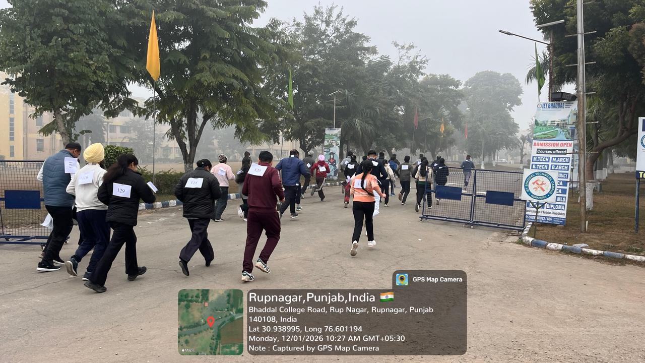 The main objective of this run was to spread awareness among students about the thoughts of Swami Vivekananda and the significance of National Youth Day, and to inspire the younger generation. Faculty members and students participated in the event with great enthusiasm. The route of the run was planned within the designated areas of the IET Bhaddal Technical campus.