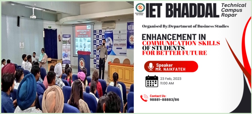 The Department of Business Studies organized a seminar on "Enhancement in Communication Skills of Students for Better Future" on February 23, 2023, at the C-Block Seminar Hall. The event aimed to help students enhance their communication skills, which are essential for academic success, career development, and personal growth. The seminar provided practical strategies for improving verbal and non-verbal communication, preparing students to excel in various professional and social settings.