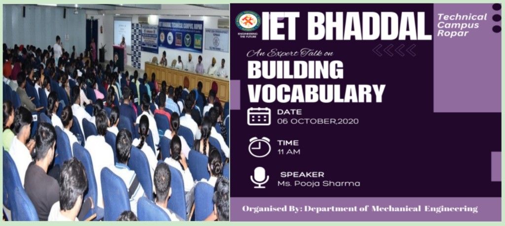 The seminar on "Expert Talk on Building Vocabulary" was organized on October 6, 2020, with the objective of helping participants enhance their vocabulary skills. The event provided valuable insights into how a strong vocabulary can improve communication, academic performance, and professional success. The seminar was designed for students, language enthusiasts, and professionals looking to strengthen their command of the English language.