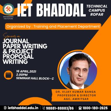 Dr. Vijay Kumar, Principal of Amritsar Group of Colleges, Amritsar, conducted a webinar on 'Journal Paper Writing and Project Proposal Writing.' The session focused on guiding participants through the essential steps of writing research papers for journals and crafting effective project proposals. Dr. Kumar provided valuable insights into structuring papers, choosing appropriate journals, and adhering to publication standards.